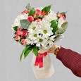 Букет гвоздик и роз с Мишкой на 14 февраля
