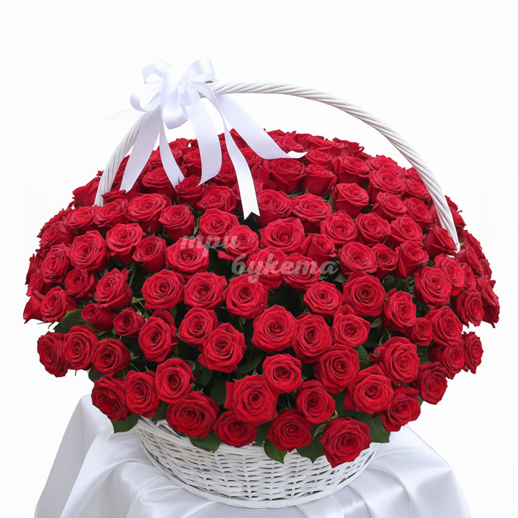 201 красная роза в корзине