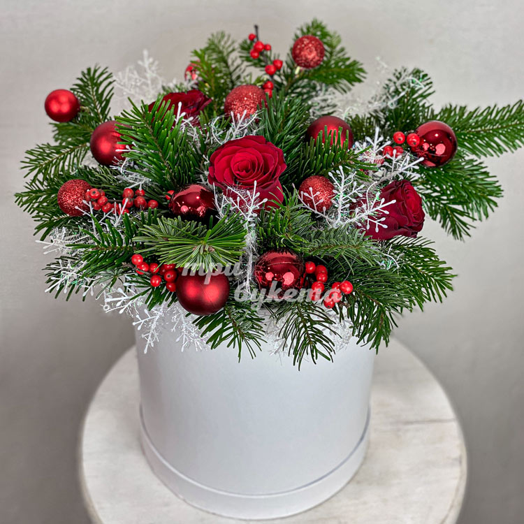 5 роз в новогодней коробке