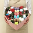 Белые и розовые пионы в коробке