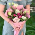 Букет белых эустом и роз с лимониумом