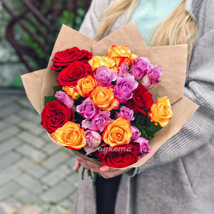Букет из 25 цветных кенийских роз