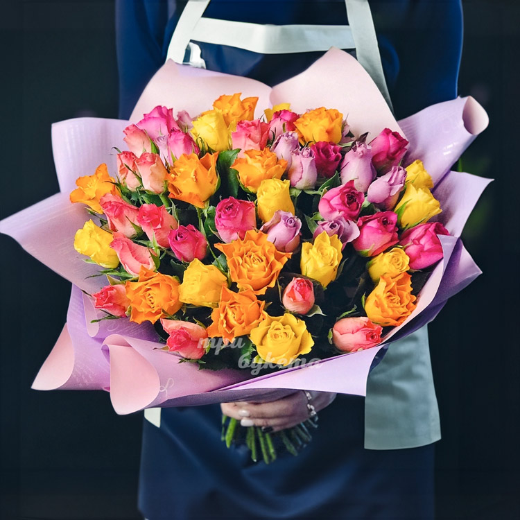Букет из 45 цветных кенийских роз