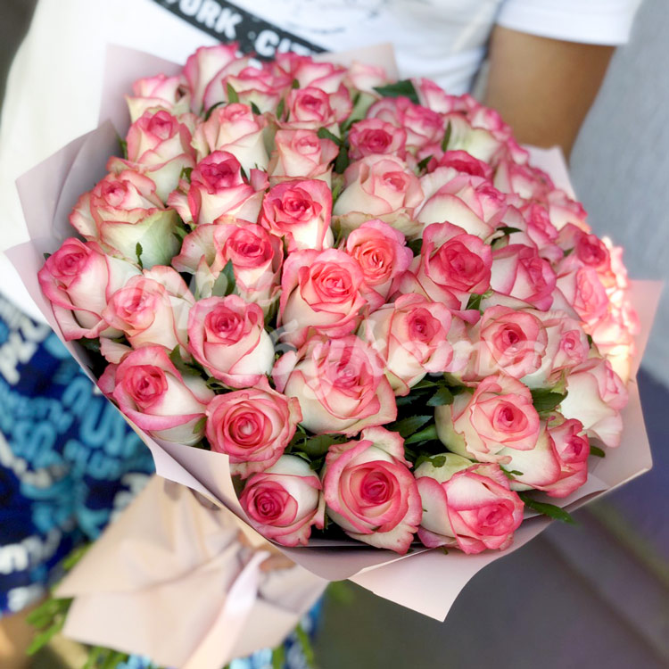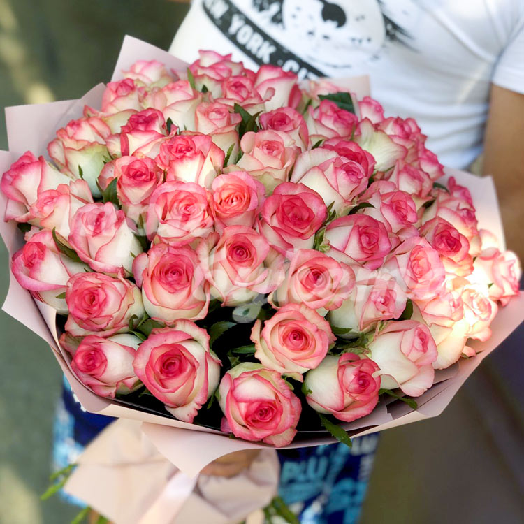 • Розовые розы, 51 шт.