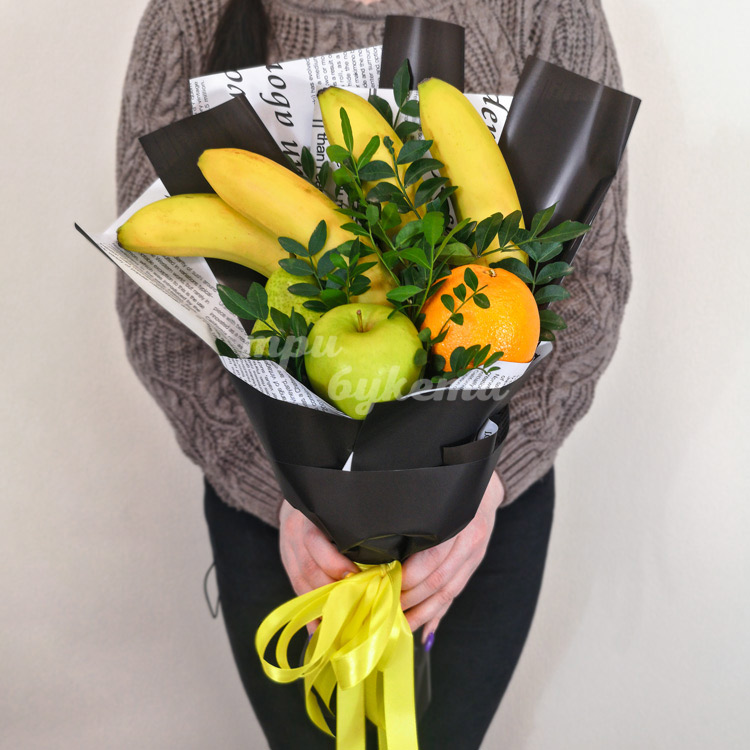 Букет из бананов, груши и яблока