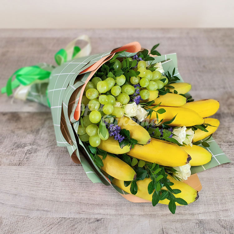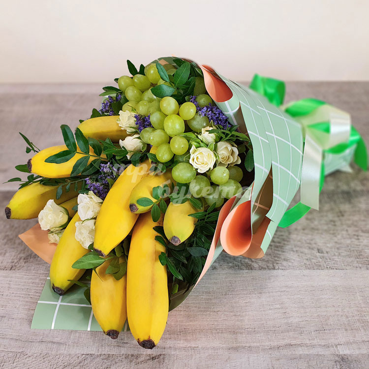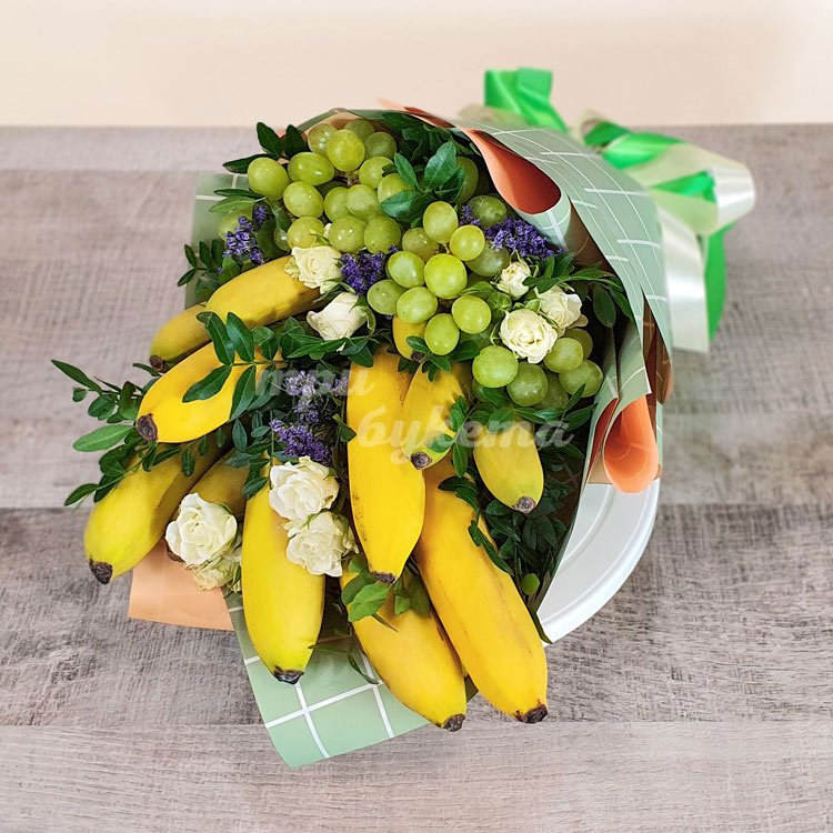Букет из бананов, винограда и роз