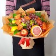 Букет из цветов и фруктов в крафте
