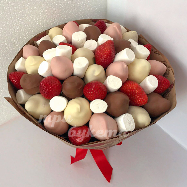 Букет из клубники в цветном шоколаде