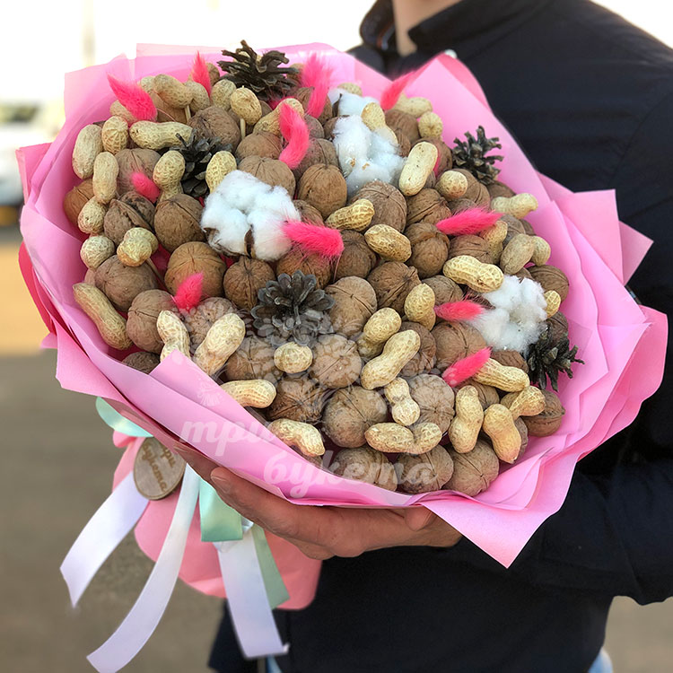 Букет из орехов и хлопка