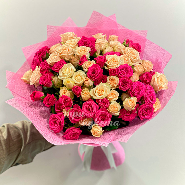 Букет кремовых и розовых куст. роз