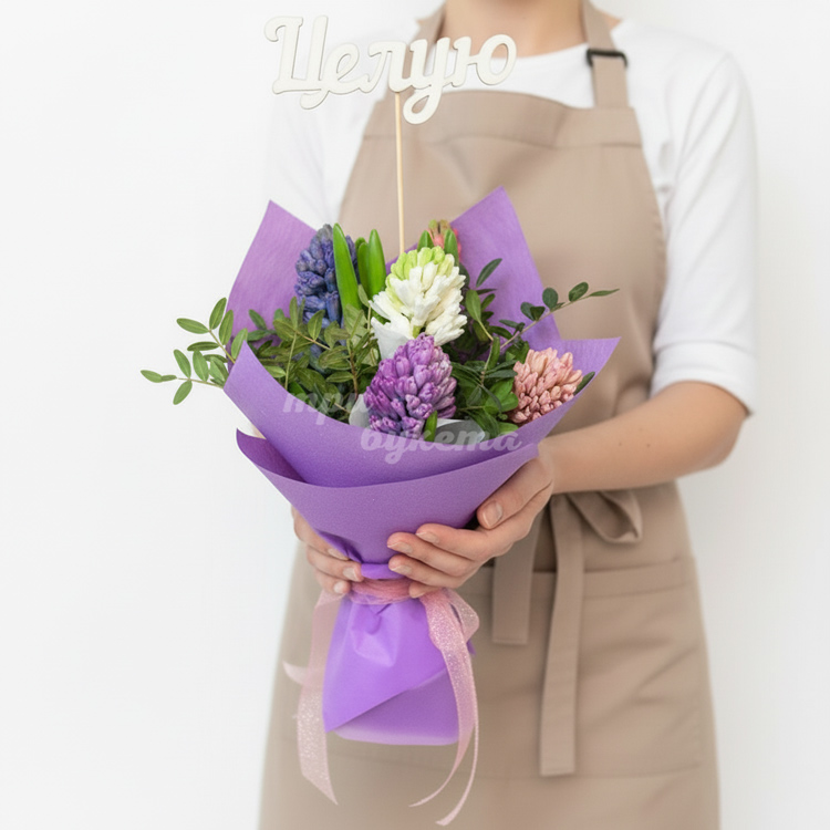 Букет на 14 февраля из гиацинтов