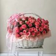 Букет светло-розовых роз и клубники