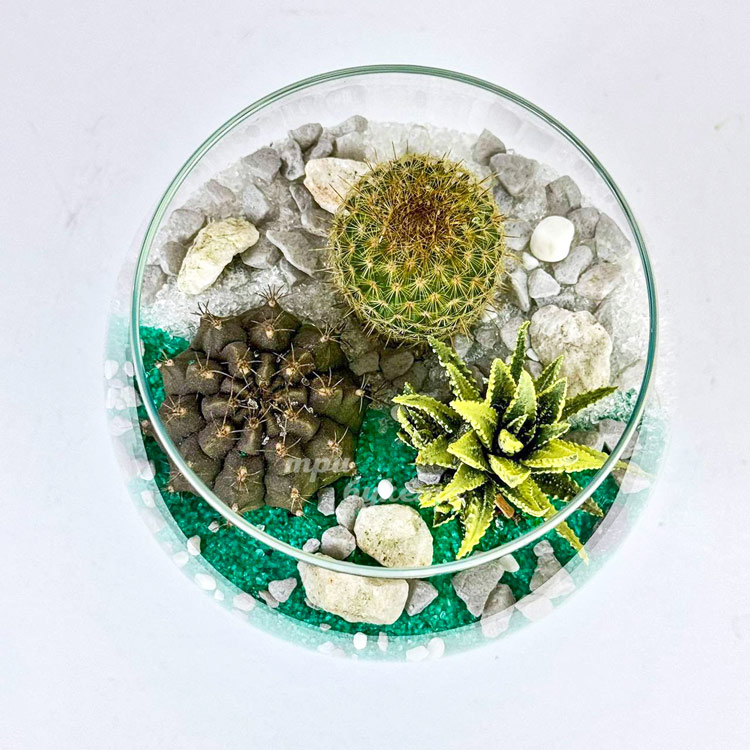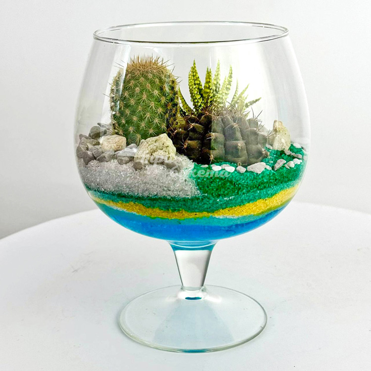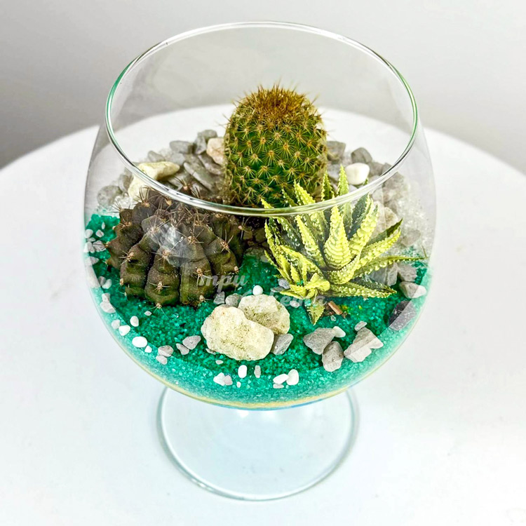 Флорариум кубок с кактусами и хавортией
