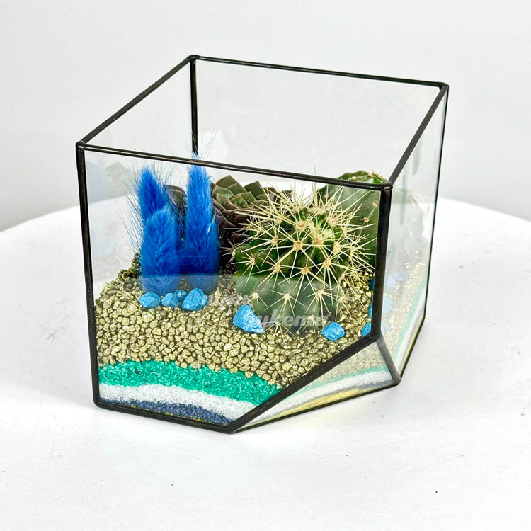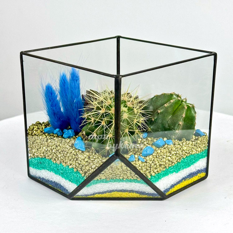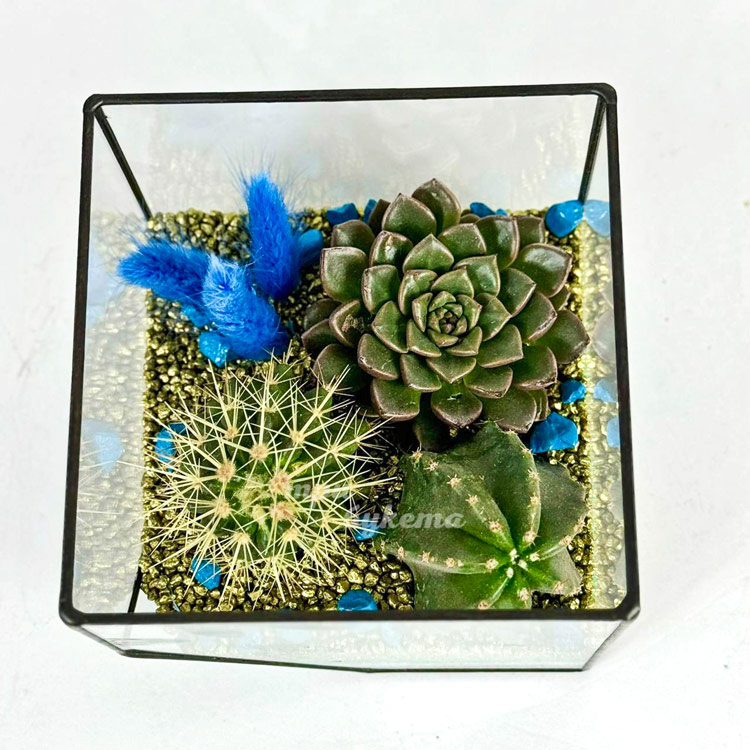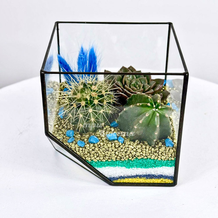 Флорариум с кактусами, суккулентом и лагурусом