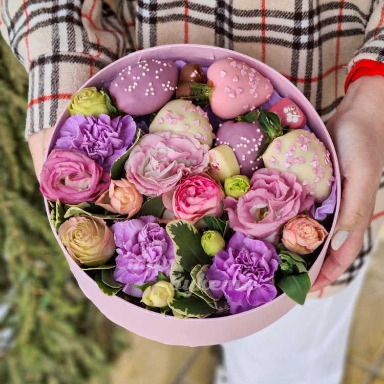 Комп. из 5 клубник в шоколаде с цветами