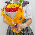 Композиция ярких цветов в шляпной коробке