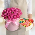 Коробка из 3 куст. хризантем и 3 роз