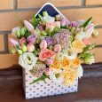 Коробка пионов с эвкалиптом