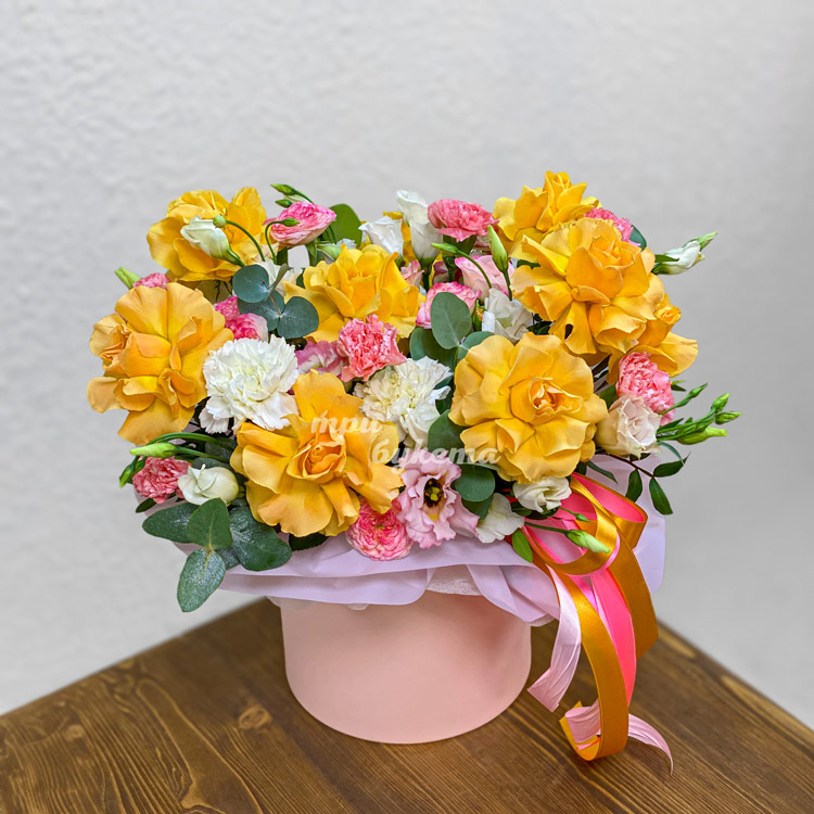 Коробка роз Топ-сан и розовых гвоздик
