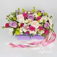 Коробка с гортензиями, розами и эустомами