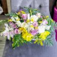 Корзина кустовых роз и тюльпанов