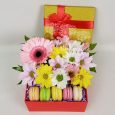 Корзина нежно-розовых роз и эустом