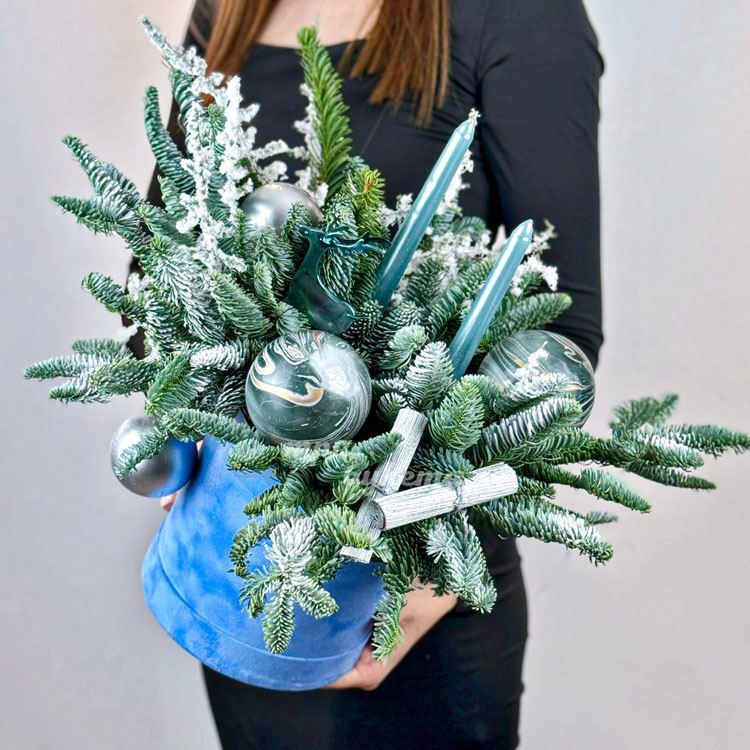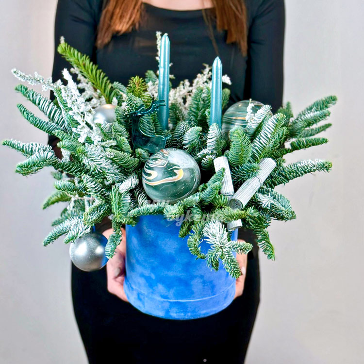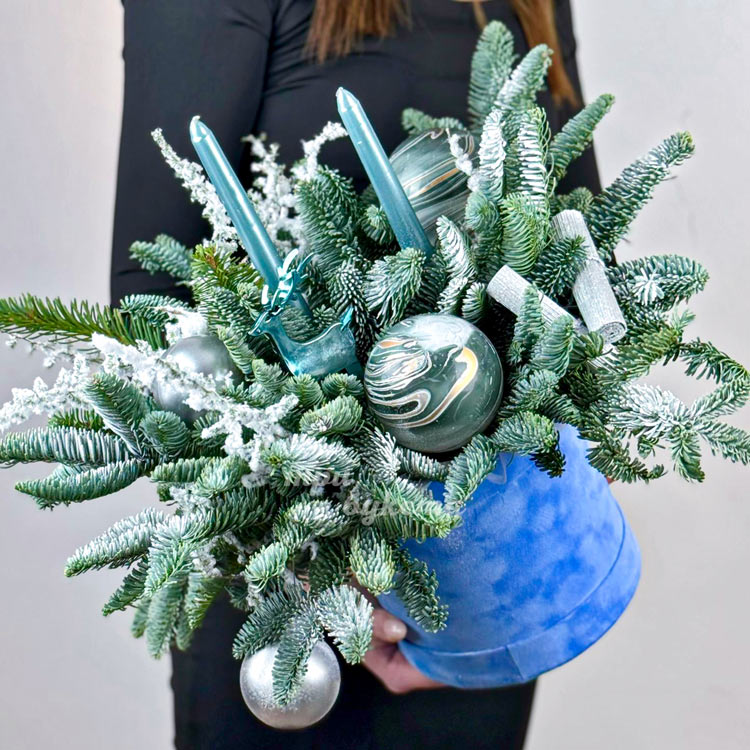Новогодняя коробка с шариками и декором