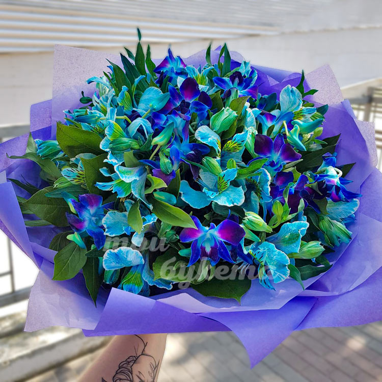Окрашенные альстромерии и орхидеи