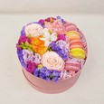 Подсолнух с эустомами в корзинке