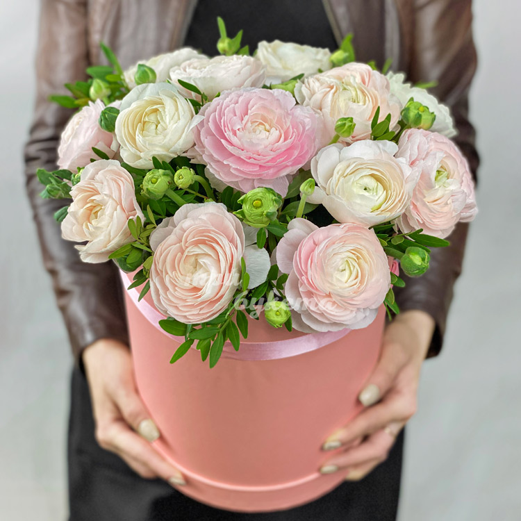 Шляпная коробка с 15 ранункулюсами