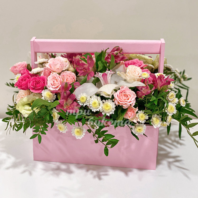 Ящик с куст. розами и альстромериями