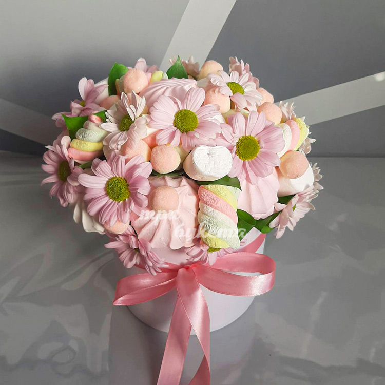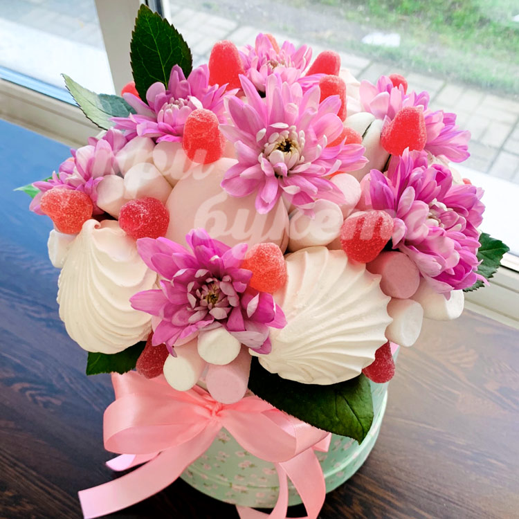 Зефир и хризантемы в коробке