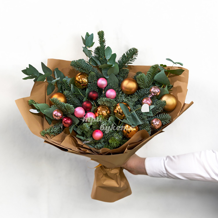 Зимний букет из шаров и веток хвои